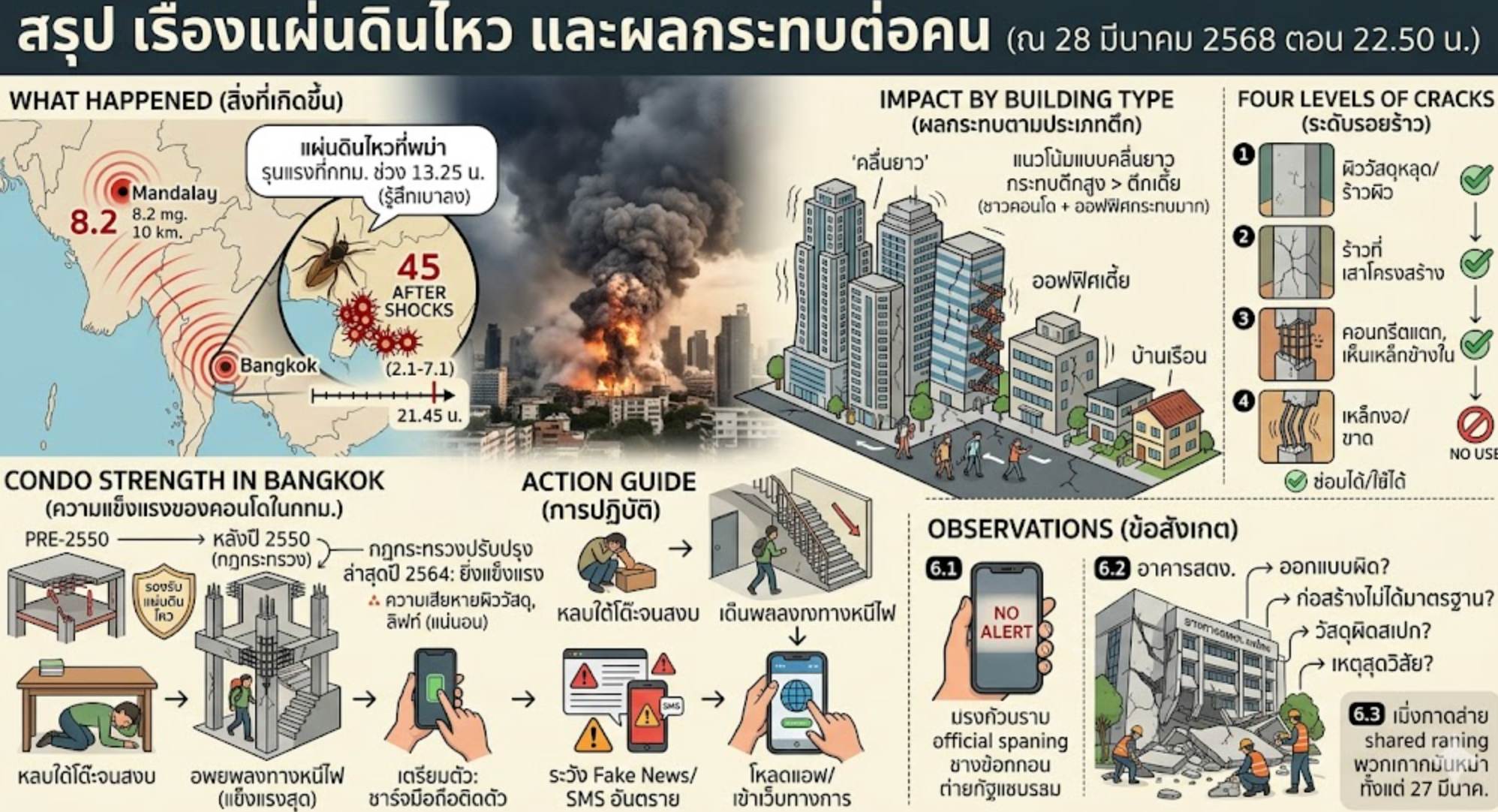 สรุปเรื่องแผ่นดินไหว ณ 28 มีนาคม 2568